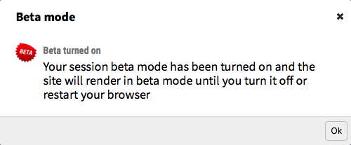 För att aktivera betaläget för dig så klickar du på ditt namn nere i adminlisten och väljer "Turn beta on", det kommer upp en dialogruta som berättar att beta är nu på och när du laddar om sidan så ser du den nya funktionaliteten. Så länge du befinner dig i beta-läge så byts adminlistens bakgrund ut mot en gulrandig list som varnar om att du är i betaläge.