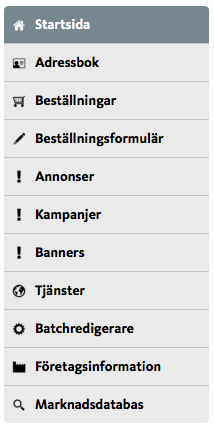 Som inloggad tjänsteleverantör ser du nu alla aktuella funktioner i menyn i vänsterspalten och kan börja fylla i dina uppgifter.