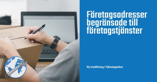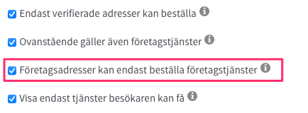 Nu finns det en ny inställning i Tjänsteguidens inställningar som heter "Företagsadresser kan endast beställa företagstjänster".