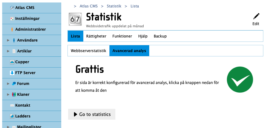 Funktionen är inbyggd men måste aktiveras, gå till Atlas CMSStatistik (om du inte ser den modulen, kontakta oss via supporten) och klicka på "Avancerad analys"