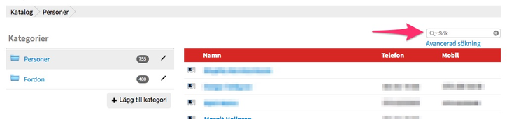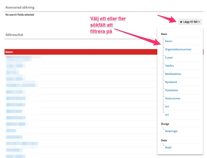 Alla data är sökbara och man kan snabbt hitta ett namn, ett medlemsnummer eller andra data. Genom att filtrera sökningen i "Avancerad sökning" kan man t ex snabbt få fram alla som kryssat i att de gillar golfresor och göra ett riktat mailutskick till dem från CRM-systemet.