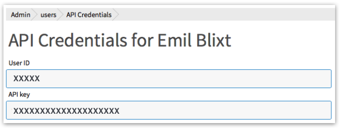 Sedan måste API-nyckel delas till användaren, gå till AdminAnvändare och sök upp den valda användaren. Tryck sedan på VerktygAnvändarens API-Nyckel, där du API-ID och API-nyckel och kan dela det till användaren.