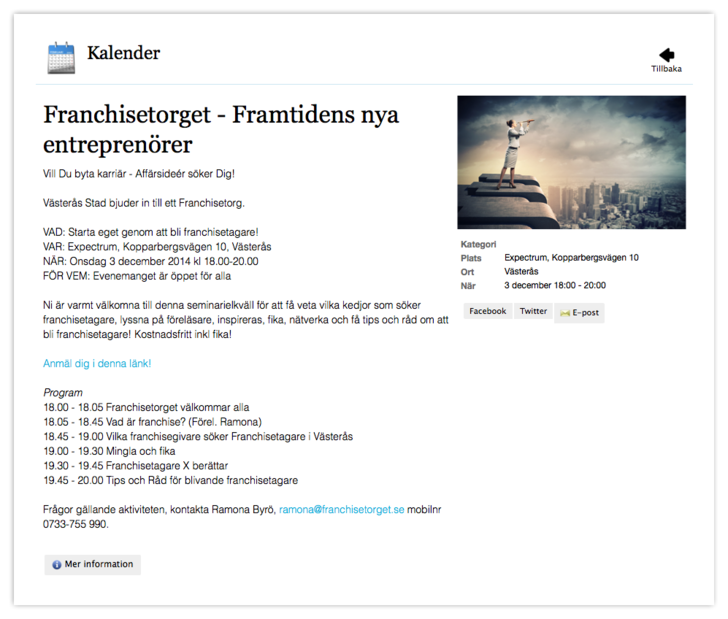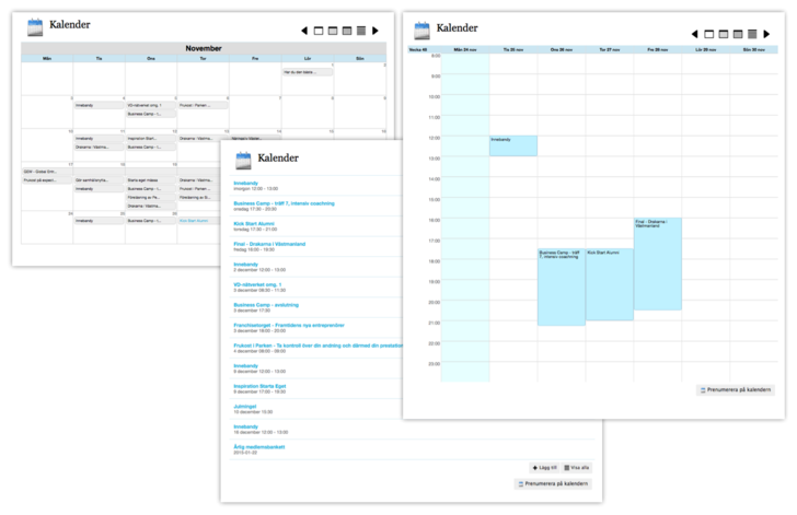 Kalenderposten erbjuder en stor yta för information, bilder, länkar, nedladdningsbara filer.