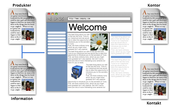 Artiklar som är länkade från menyn hittas alltid på samma ställe. Man klickar på t ex "Produkter" i menyn och får då läsa artikeln som handlar om produkterna.
