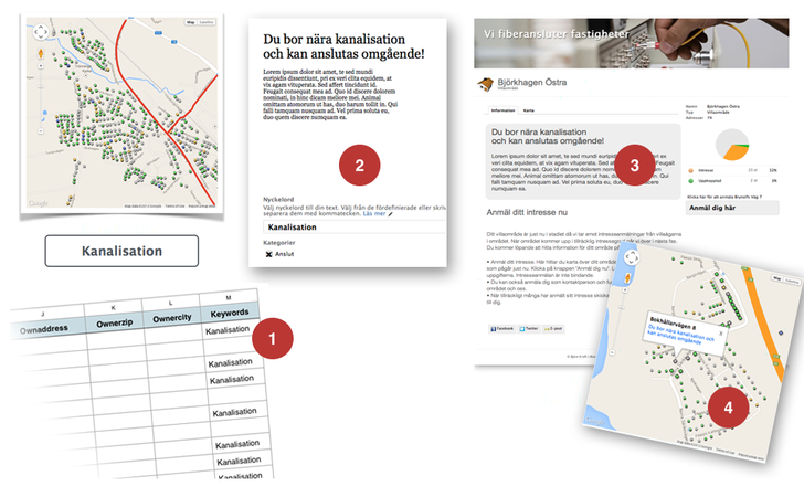 Ni kan nu via nyckelord ha ett selektivt budskap till vissa adresser i ett område. Till exempel de adresser som ligger nära kanalisation. Så här fungerar det: