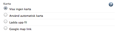 Du kan per informationssida och objekt bestämma om du vill visa en karta eller inte. Det finns tre varianter av kartor du kan använda.