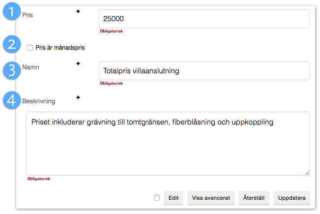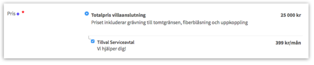Med modulen priser kan ni skapa fler prisalternativ för anslutning på ett område.