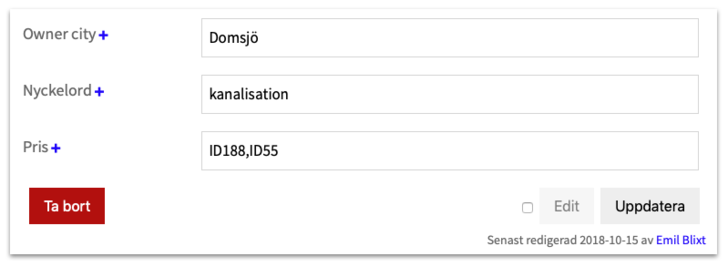 OBS! Prismodulen används endast när ni har två eller flera priser på ett område! Har ni bara ett pris anger ni detta i siffror i fältet Anslutningspris