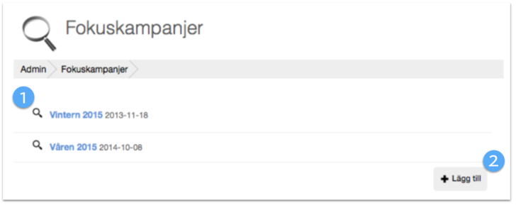 Gå till Atlas CMS > Anslutamotorn, klicka på undermodulen Fokuskampanjer