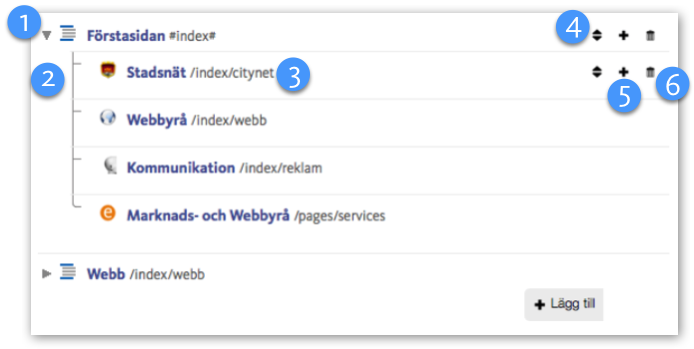 Menymodulen används för att skapa navigationen in till de olika delarna av sidan. En meny kan vara i flera olika nivåer, vertikal eller horisontell. Utseende avgörs av layout- och stilmallen och tas fram av oss på beställning av er. Förändringar i utseende av menyn tas upp med oss medan själva strukturen och innehållet kan redigeras direkt av er.