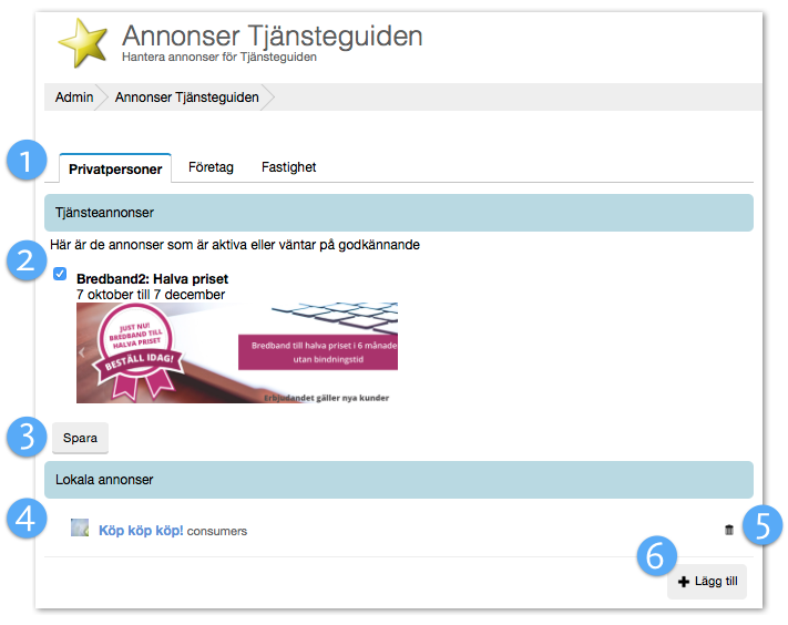 - Lokala annonser Här ser ni de lokala annonser ni skapat.