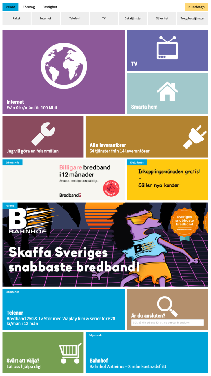 Välj vilken kundkategoris startsida som ska redigeras (Privat, Företag etc)