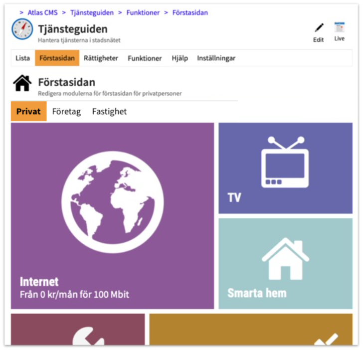 Atlas CMS > Tjänsteguiden > fliken Förstasidan