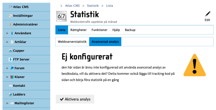 Funktionen är inbyggd men måste aktiveras, gå till Atlas CMSStatistik (om du inte ser den modulen, kontakta oss via supporten) och klicka på "Avancerad analys"