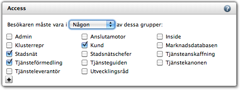 Tidigare har varje funktion själv avgjort vad som gäller (det vanligaste har dock varit att man måste vara medlem i någon av de valda grupperna), men nu kan du som administratör själv välja vad som gäller.