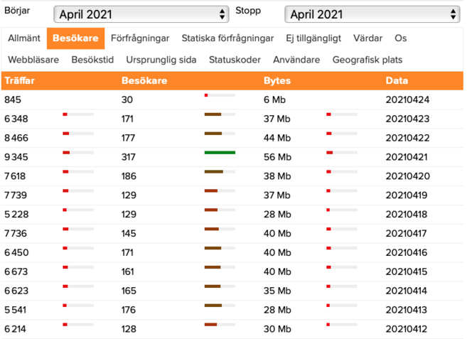 Vår lösning på det var att ta fram statistik från våra webbserverloggar som ni kan se, och vi tror fortfarande att den typen av statistik ger en bra insikt i hur pass många det är som besöker er sida över tid.
