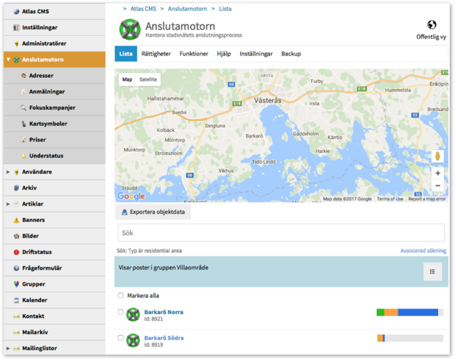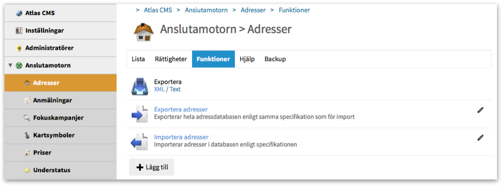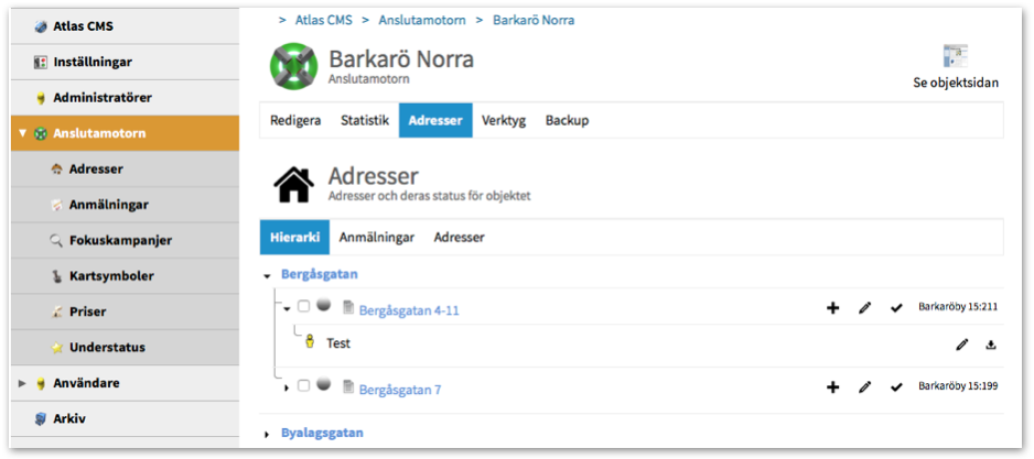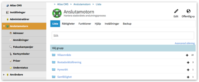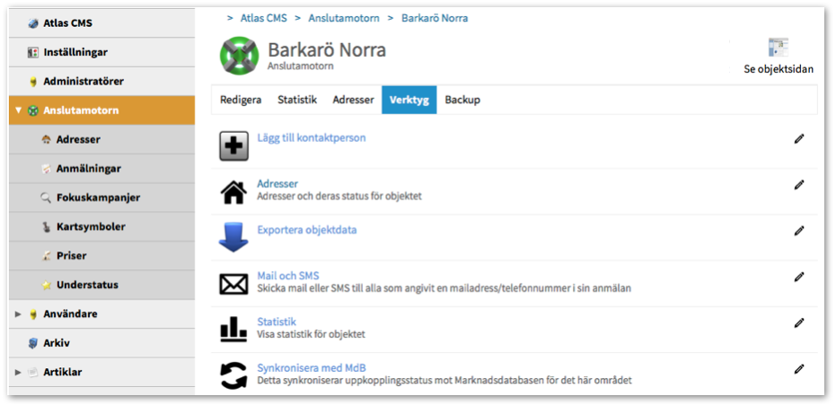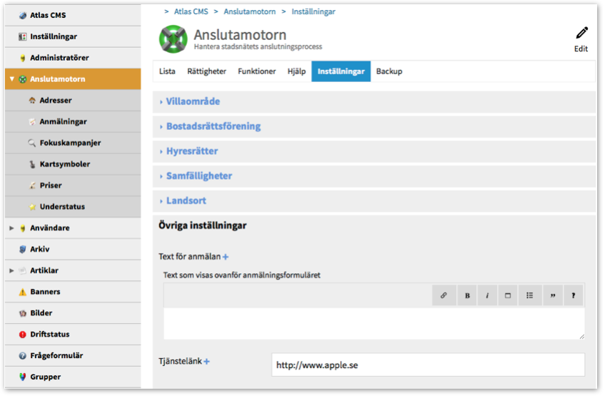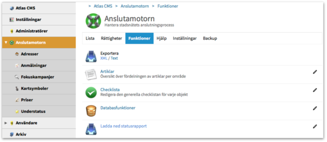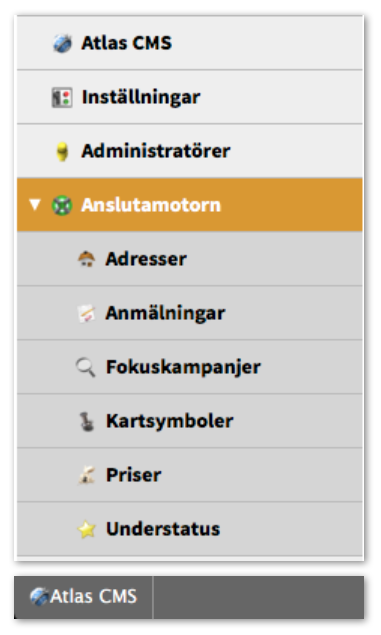 Tidigare fanns det två sätt att ta sig till Anslutamotorns adminfunktioner, antingen via Atlas CMS > Admin eller via Anslutamotorn-länken nere i Adminlisten.