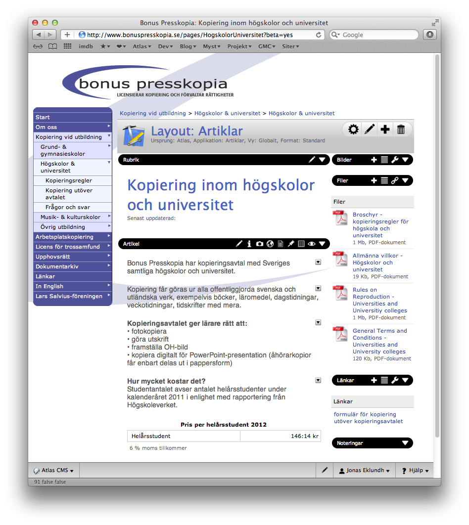 Atlas är ett projekt som varit under utveckling sedan 2001 och vi har hundratals kunder som använder det dagligen. Ett projekt som Atlas handlar om presentation av data i grund och botten. Ni lägger in texter och bilder i Atlas som i sin tur ska visa det i en enhetlig layout på er sida.