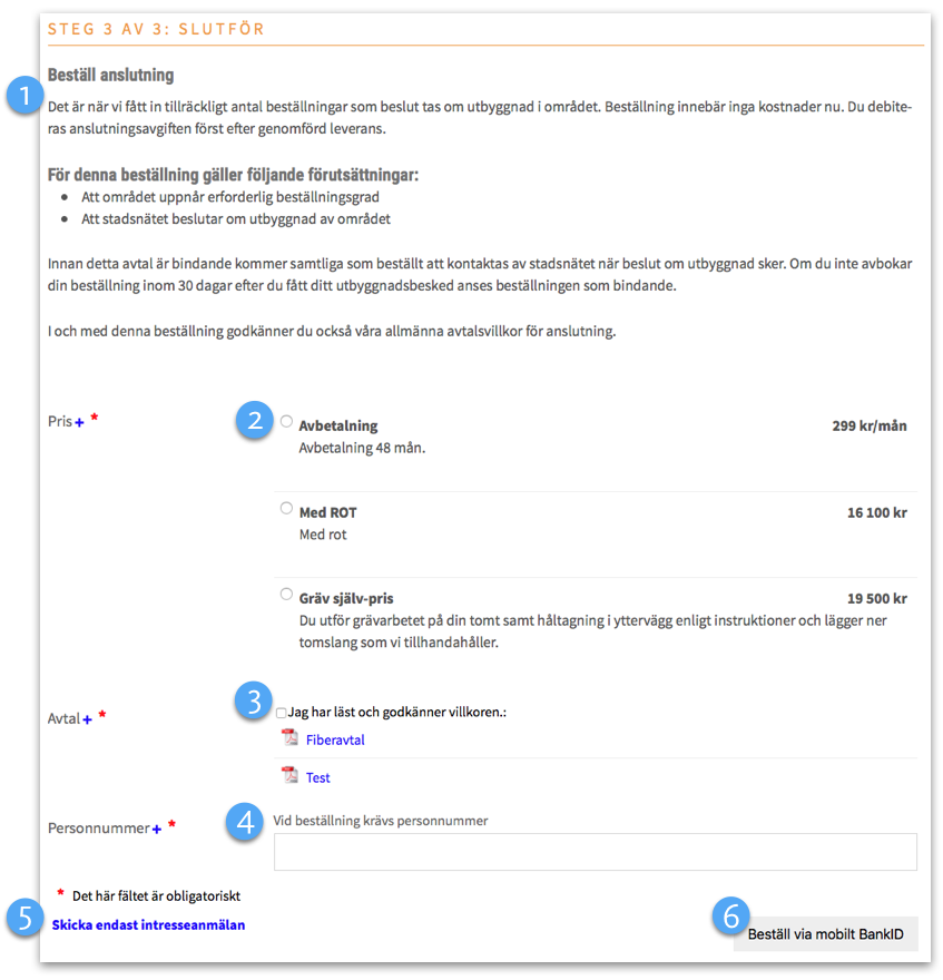 I sista steget lämnar kund sin Intresseanmälan eller gör sin Beställning