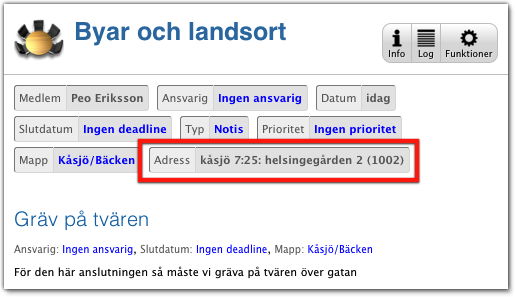 I samma lista så ser ni nu uppgifter på samma sätt som ni idag ser anmälningar, som "barn" till de unika adresserna. Om det är en Att Göra så kan ni färdigmarkera den redan här, eller redigera.