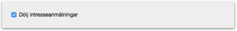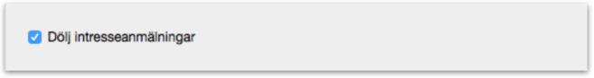 En annan nyhet är att funktionen Dölj intresseanmälningar, i områdessidornas inställningar, nu påverkar både områdessidan, kartan, sökresultaten och anmälningsformuläret. Om funktionen är ikryssad visas ingen info om intresse på dessa sidor.