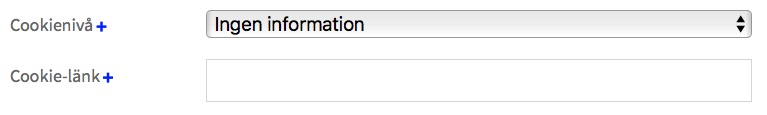 Oavsett tolkning så inför vi från och med en ny inställning för er Atlas CMS-webb som vi kallar för "Cookienivå". Under Atlas CMSInställningarSidan så ser ni längst ned två nya fält, Cookienivå och Cookielänk.