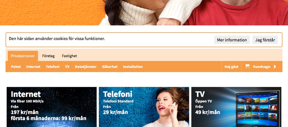 Till skillnad från PTS så visar vi inte detta på sidor som inte sätter cookies, så startsidan och Cookie information-sidan kan visas utan problem (ironiskt att informationen om cookies som PTS länkar till i sin motsvarande blänkare inte kan läsas utan att man godkänt cookies).