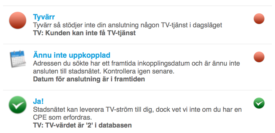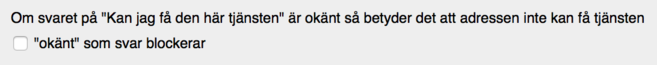 Tidigare fanns det en global inställning i Tjänsteguidens inställningar var "Okänt" status betydde, som till exempel om en kund söker på sin adress och Marknadsdatabasen inte har information om kundens porthastighet, om det fanns en CPE eller om TV kan levereras så är status "okänt" och standardinställningen är att tillåta beställning även om status är okänt men med den globala inställningen kunde man ändra det till att "okänt" inte tillät beställning, nu kan man bestämma det per separat "okänt"-svar i Meddelandefunktionen