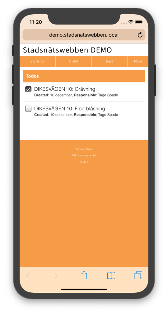 I anslutaprocessen kan man lägga upp partners, till exempel grävare, fiberblåsare och liknande. Nu kan man även skicka dessa uppgifter till dem så dom får upp dem på telefonen till exempel.