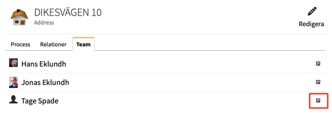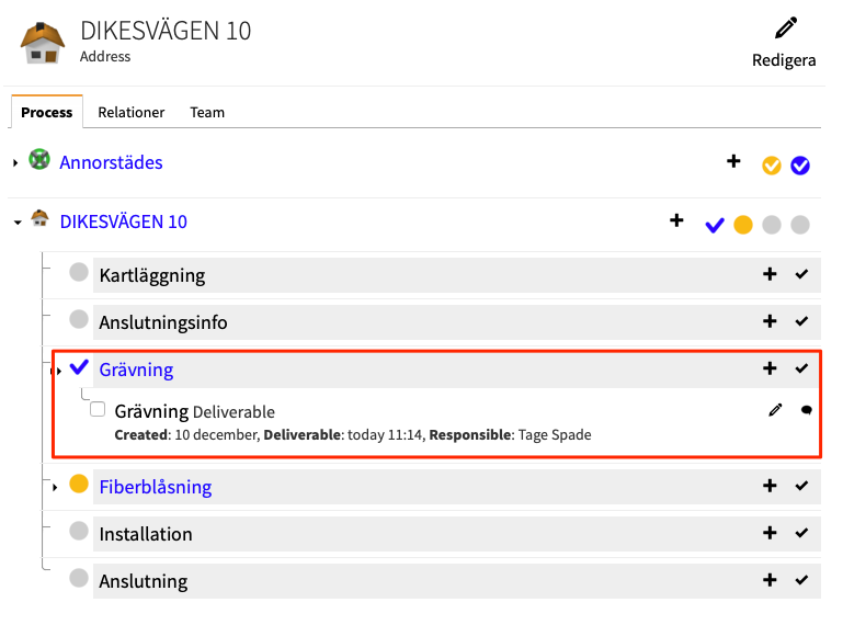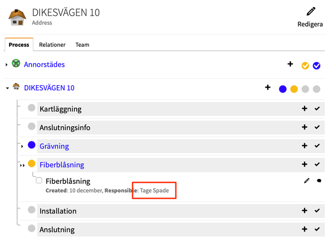 Om vi som exempel går in på Dikesvägen 10 här och tilldelar "Tage Spade" vår grävpartner att han ska gräva fram till Dikesvägen 10.