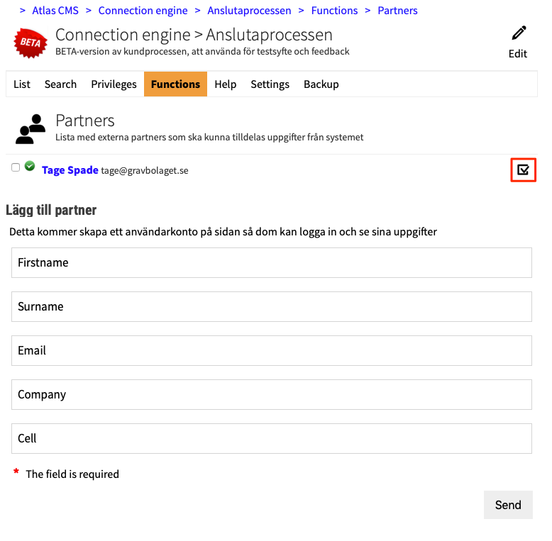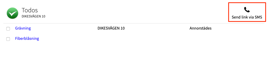 Under Funktioner och Partners kan ni hitta en länk till en lista för partnern som innehåller alla uppgifter, inte bara för en adress eller objekt, samma lista kan skickas som länk till partnern på samma sätt.