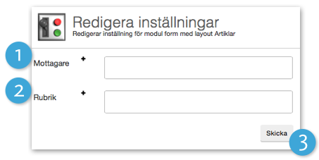 - Rubrik. Här anger du vilken rubrik som ska användas i mail från formuläret.