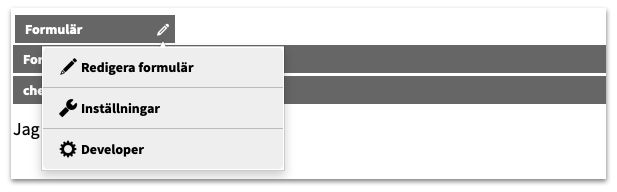 Klicka på pennan i grå fältet Formulär och sen på Redigera formulär för att redigera formuläret.