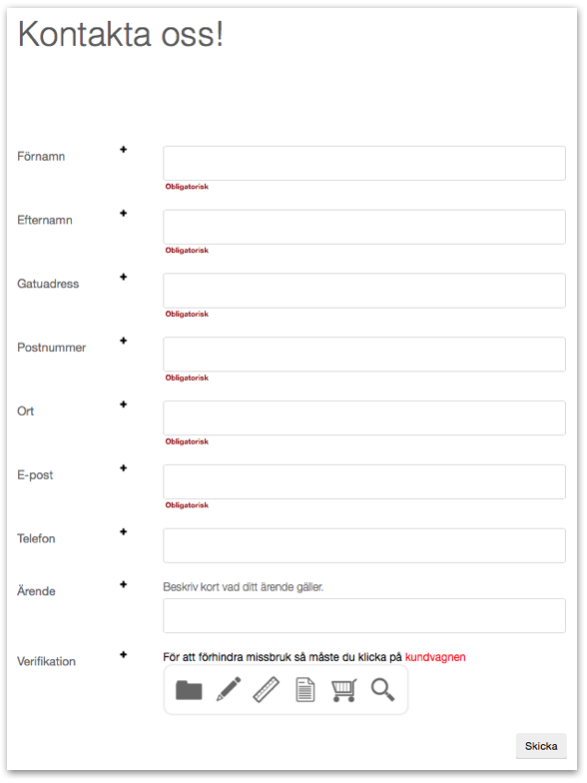 Med hjälp av formuläret kan du t.ex. få in kontaktuppgifter, förfrågningar, synpunkter, beställningar m.m.