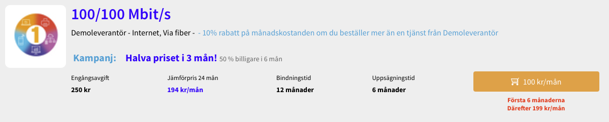 Låt oss först prata lite om hur kampanjer funkar, en TL kan skapa en kampanj som påverkar månadspris, bindningstid, startavgift och uppsägningstid, sen sätta datum på den kampajen att den gäller från idag till år 2099 eller något sådant. Detta är vad vi kallar för "permanent" kampanj i avseendet att det är inte en temporär förändring av en tjänsts pris eller förutsättningar, det är i effekt det nya normalpriset. Många TL använder detta för att få en "Kampanj"-text i listningen och det ger dem "call to action" (CTA) för slutkunden. Vi har tillåtit detta från dag ett för att det är lite plus/minus noll för slutkund, det förändrar inget egentligen och vissa tjänster får lite extra information.