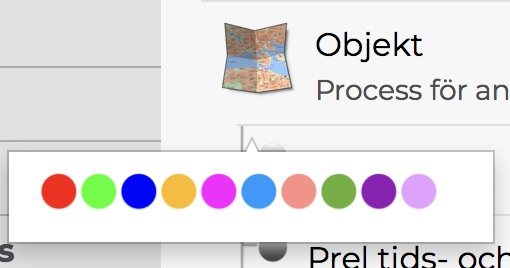 På varje nivå kan du välja ut några viktiga “milestones” eller nyckelsteg som du sätter en färgmarkering på. Dessa nyckelsteg visas sedan i de olika listvyerna och ger snabbt en överblick hur långt processen kommit i olika objekt eller adresser.