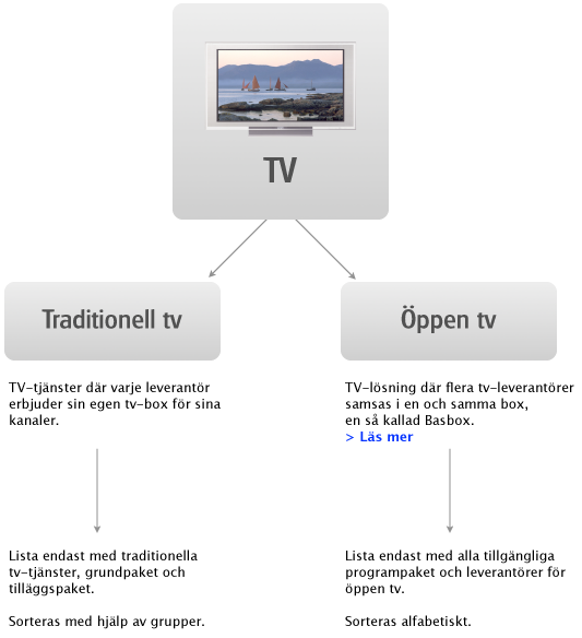 Vi vill förvarna och ber er tycka till om en kommande uppdatering i Tjänsteguiden. Det handlar om att särskilja traditionell och öppen-tv i tjänstelistningarna.
