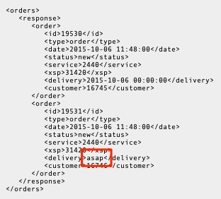 Sedan har vi API:et, både för Stadsnät () och TL (), där dom maskinellt kan hämta information om beställningar som kommit in. Där är det säkerligen så att de script som används av både stadsnät och TL förväntar sig ett datumvärde i fältet som heter "delivery", men från och med den här förändringen så kommer det värdet kunna vara "asap" vilket alltså står för "as soon as possible" och ska tolkas därefter. Alla API:et bör uppdateras snarast för att hantera "asap" som värde i det här fältet.