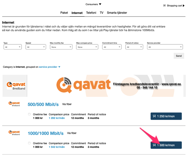 Så på måndag den 5 april kommer vi skjuta ut en förändring som istället för att visa den här dialogrutan och en liten animation som flyttar tjänsten till kundvagnen uppe till höger, så kommer man via knappen direkt till kundvagnen där dessa frågor ställs precis som i dialogrutan.