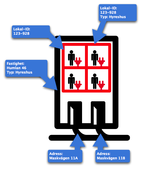 Detta är klurigare, för om du inte anger Lokal-ID så kommer uttagen att vara kopplade till fastigheten och vi vet då inte vilken boende dom hör till eftersom uttag inte kan vara kopplade till en adress (se hyreshus).