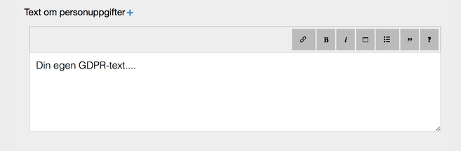 Vi har också uppdaterat de genrella texterna för personuppgifter i Anslutamotorn och Tjänsteguiden. Dessa kan du redigera vid behov, du hittar formuläret under Inställningar i admin.