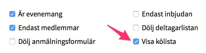 Alternativt kan du också kryssa i "Visa kölista".