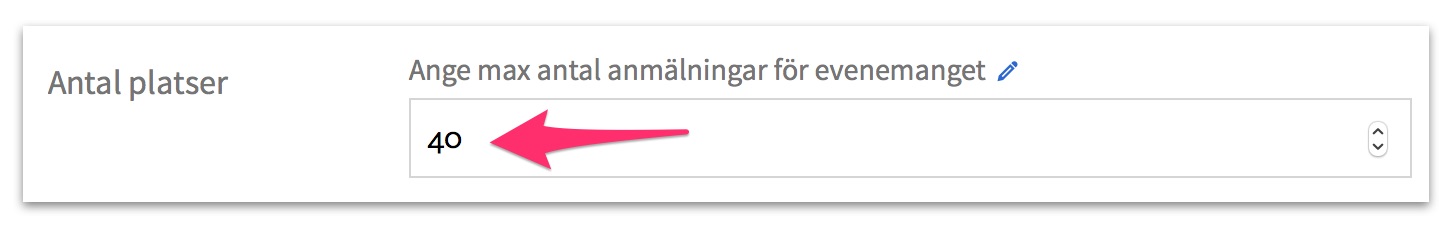Antal platser för ett evenemang