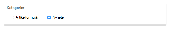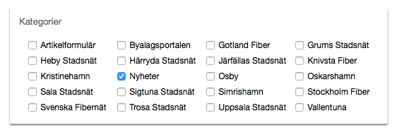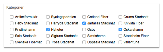 Ni kan också begränsa urvalet genom att kryssa i namnen på de dotterwebbar där nyheten ska synas, dock måste även "Nyheter" vara ikryssat