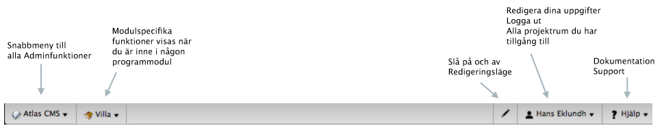 Vi bygger om lite, moderniserar och effektiviserar admingränssnittet i Atlas. Så snart du loggat in kommer du att ha en ny Adminmeny längst ned på webbsidan.