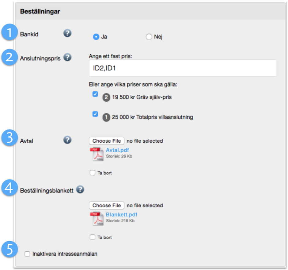5. Inaktivera intresseamälan Om ni endast vill ta emot beställningar på aktuellt område klickar ni här för att dölja intresseanmälan.