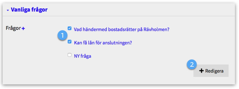 1. Klicka i de frågor som ska visas på områdessidan