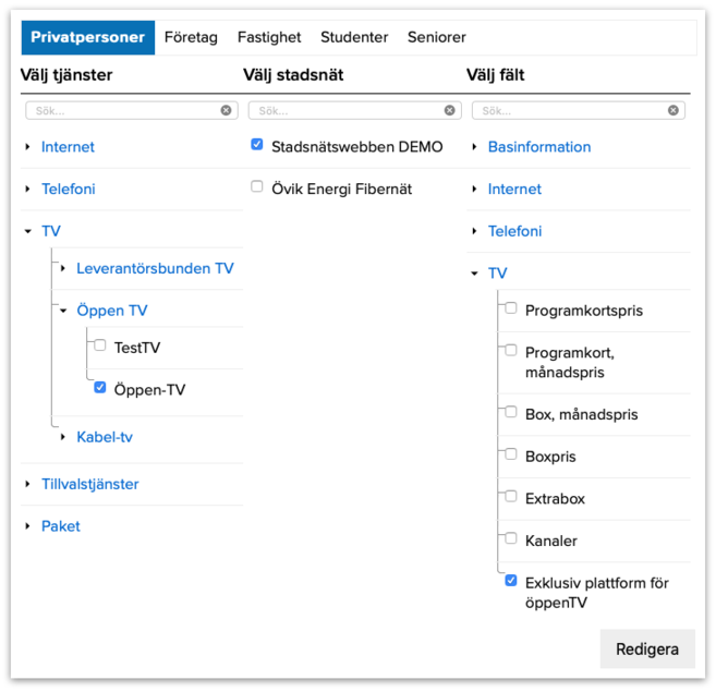 Klicka i Exklusiv plattform för öppenTV och sen på Redigera