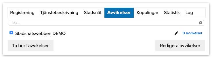 Klicka sen på fliken Avvikelser, välj vilket nät avvikelsen ska gälla för och sen på Redigera avvikelser