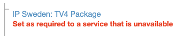 Tillval, koppling till inaktiv tjänst